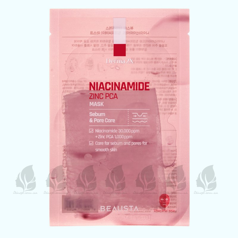 Тканевая маска для жирной кожи с ниацинамидом и цинком Derma 2X Niacinamide Zinc PCA Mask, BEAUSTA - 1 шт