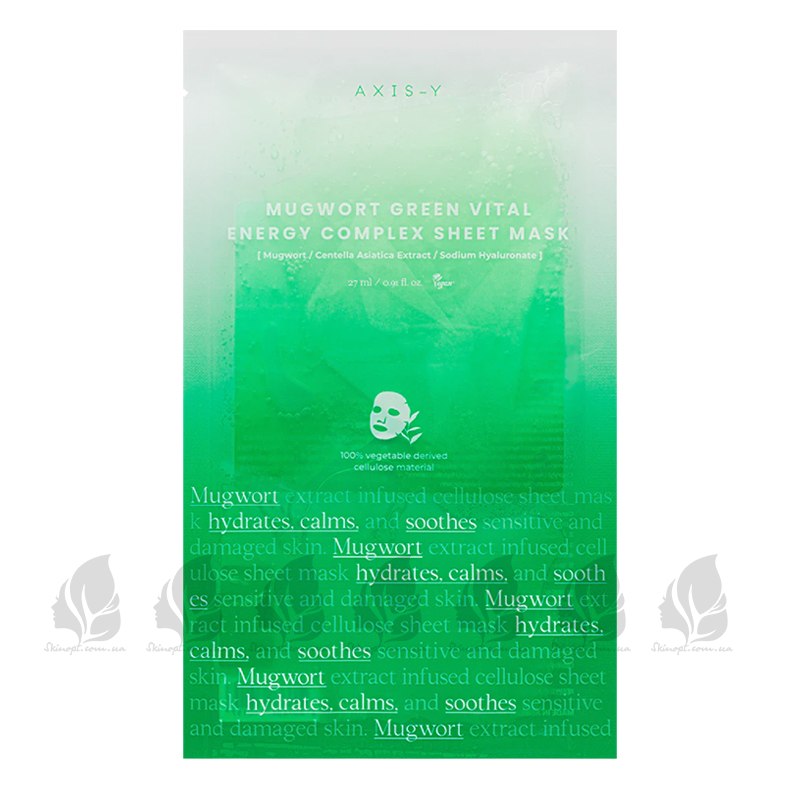 Тканевая маска успокаивающая с полынью Mugwort Green Vital Energy Complex Sheet Mask, AXIS-Y - 27 мл