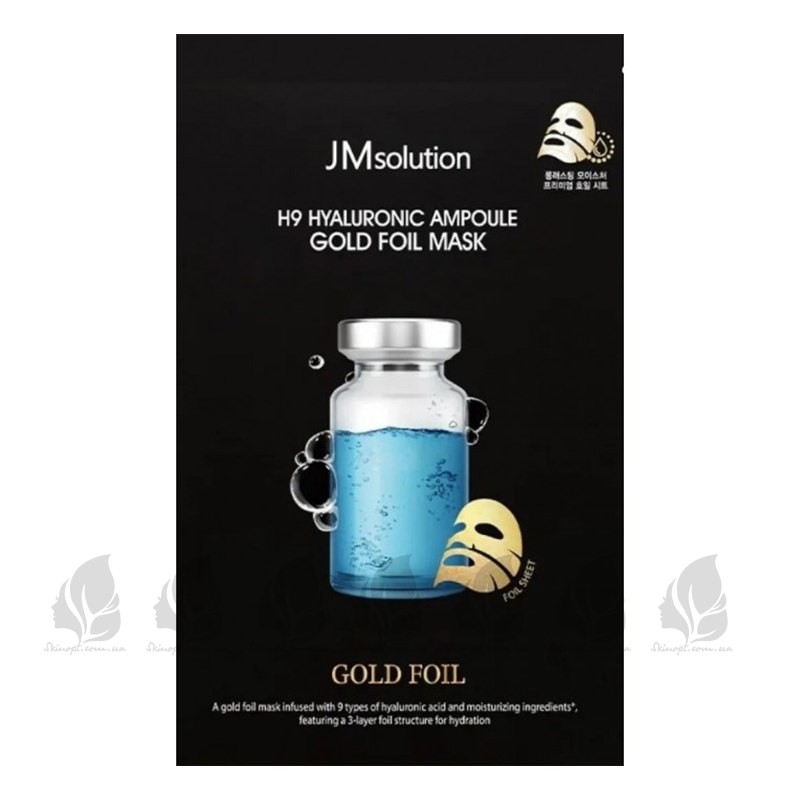 Тканевая увлажняющая маска с гиалуроновой кислотой H9 Hyaluronic Ampoule Gold Foil Mask, JMSOLUTION - 1 шт